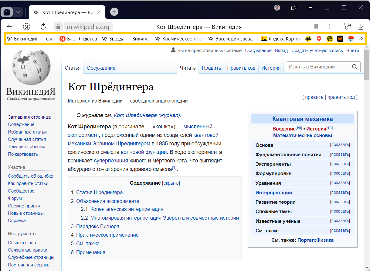 Найдите на панели закладок нужную закладку.