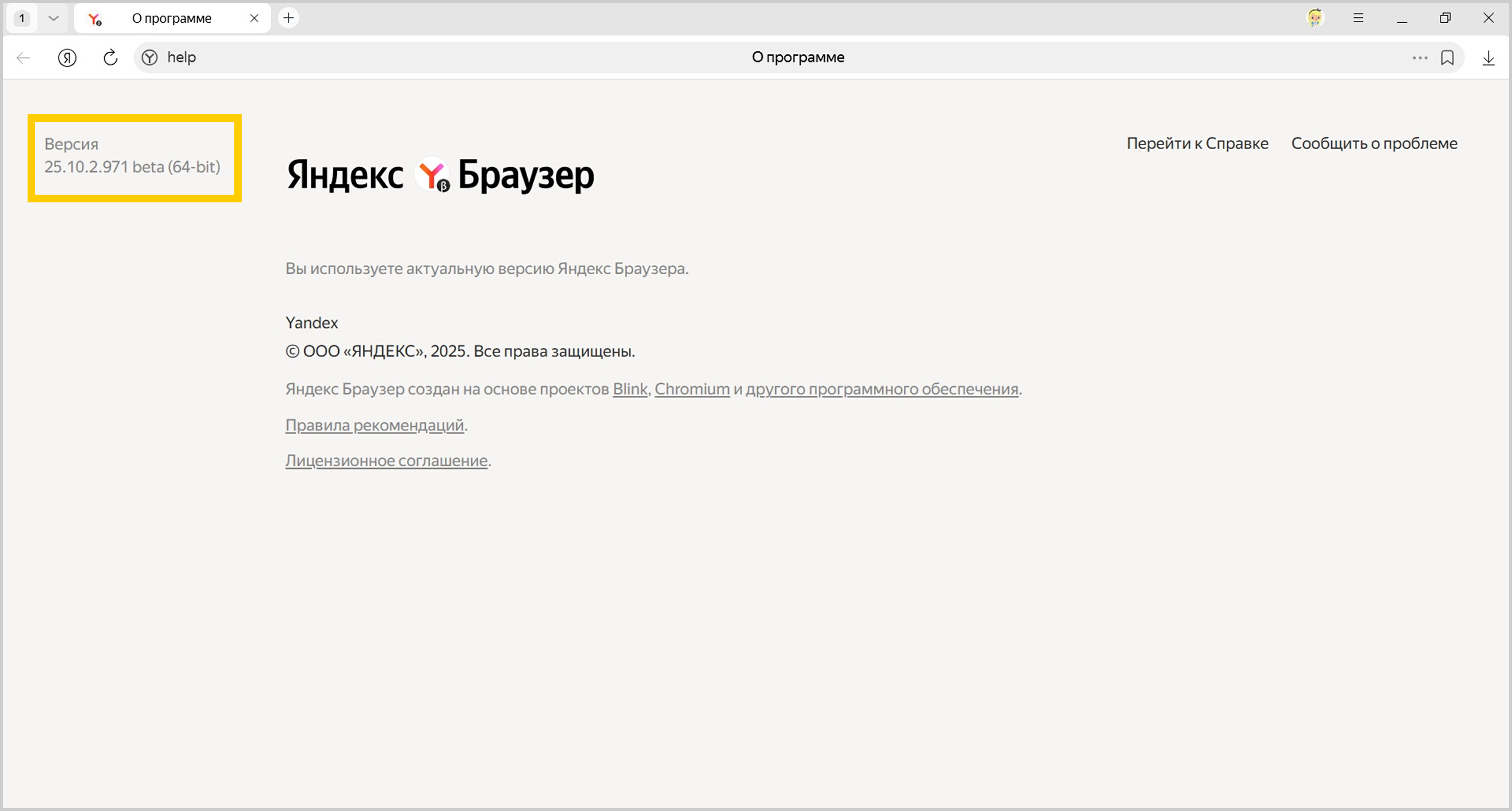 Чтобы узнать версию Браузера, нажмите browser://help