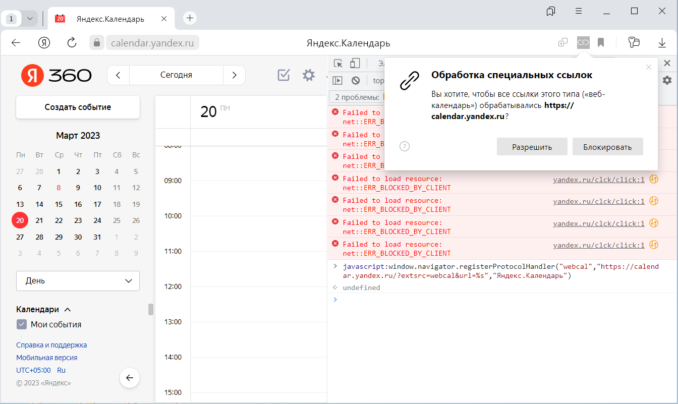 Если в правой части Умной строки нет значка , назначьте Яндекс Почту обработчиком с помощью консоли JavaScript: