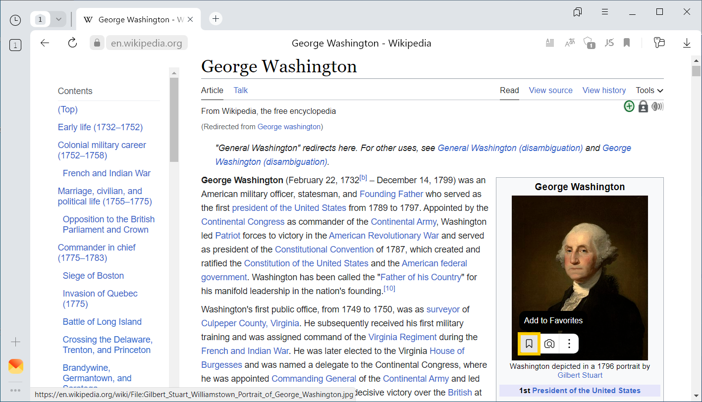 - Right-click the link and select Add link to bookmarks. The bookmarks panel opens.