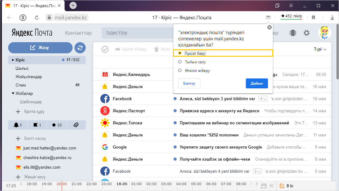 Браузерде Яндекс Поштаны бірінші рет ашқан кезде, ол оны әдепкі хаттама өңдегіші ретінде тағайындауды ұсынады: