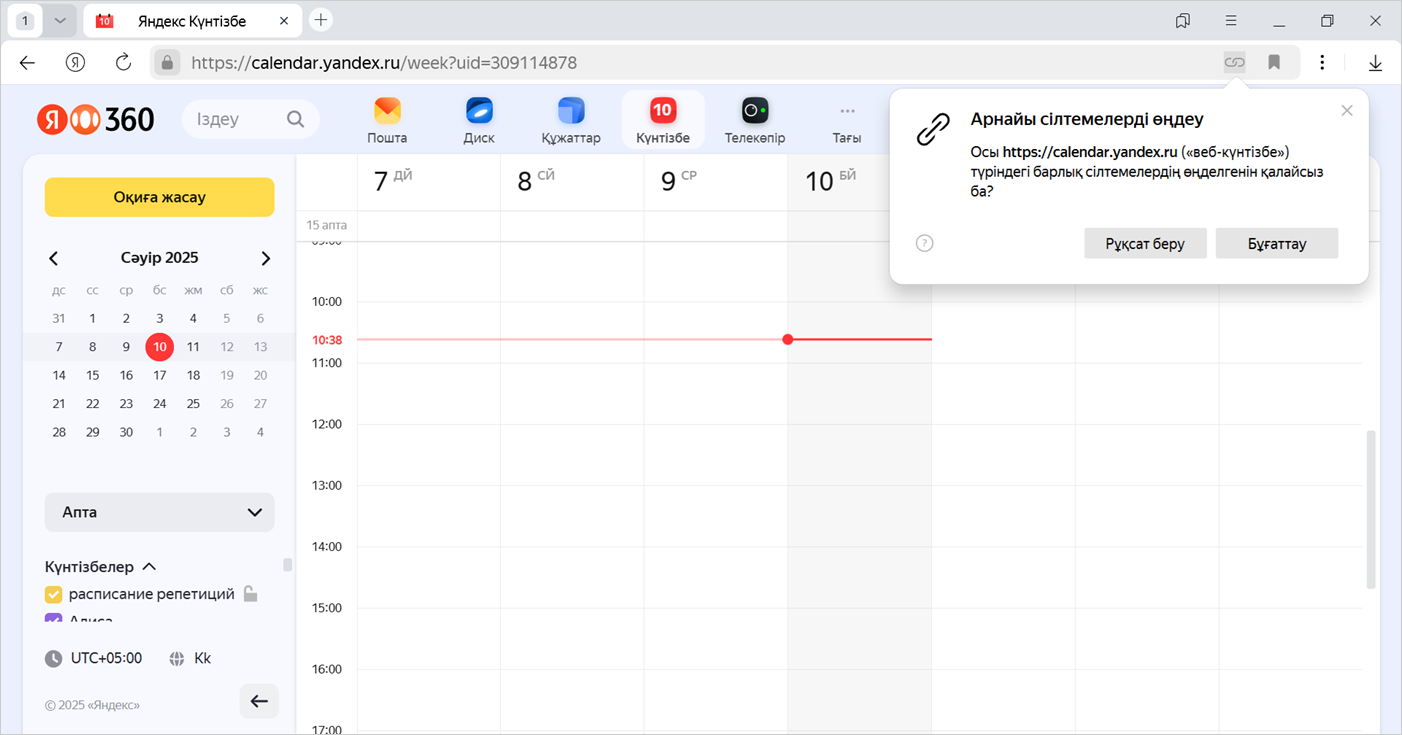 Яндекс Браузер баптауларында электрондық пошта және күнтізбе үшін әдепкі бойынша веб-қызметін орнатуға болады.