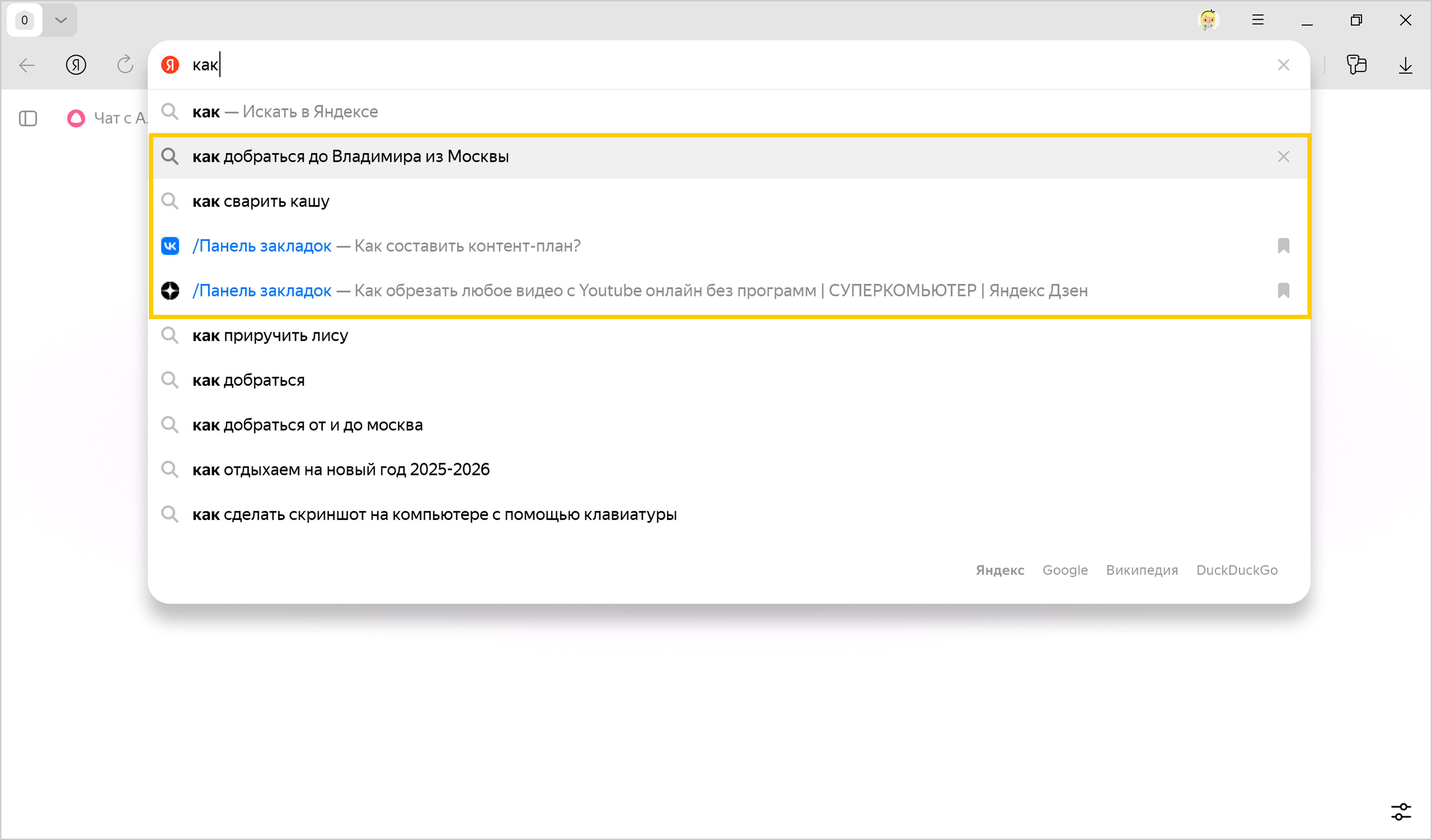 Запросы в поисковой строке Яндекса