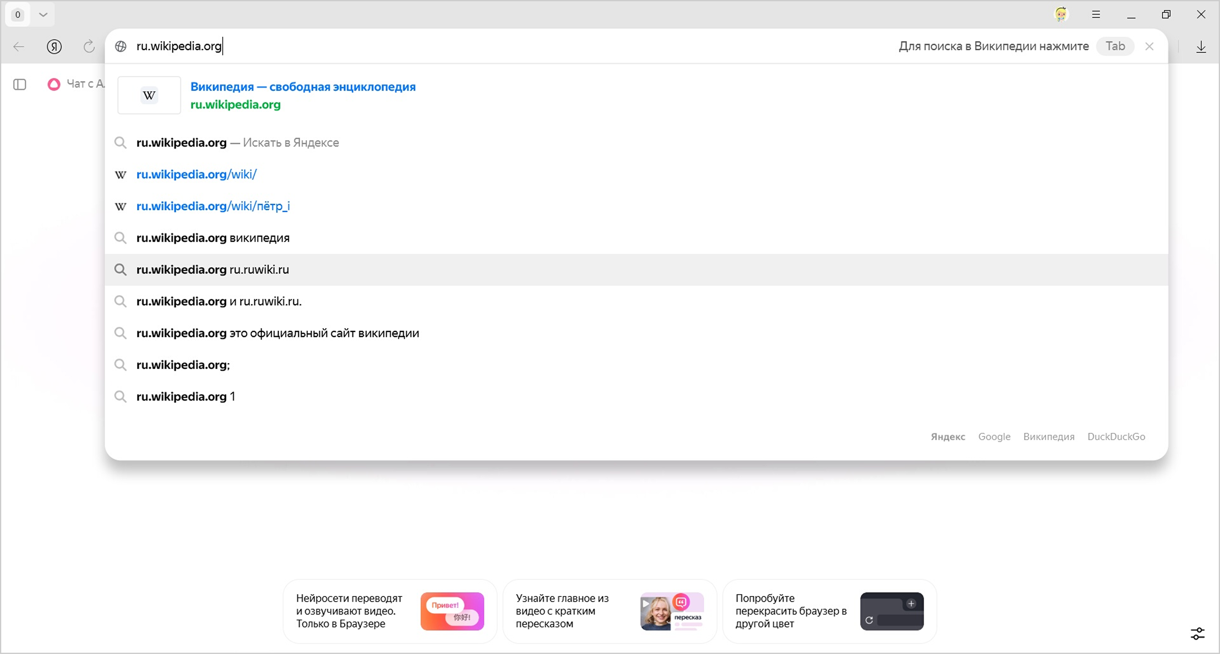 Чтобы выйти из OpenSearch, в Умной строке справа нажмите .