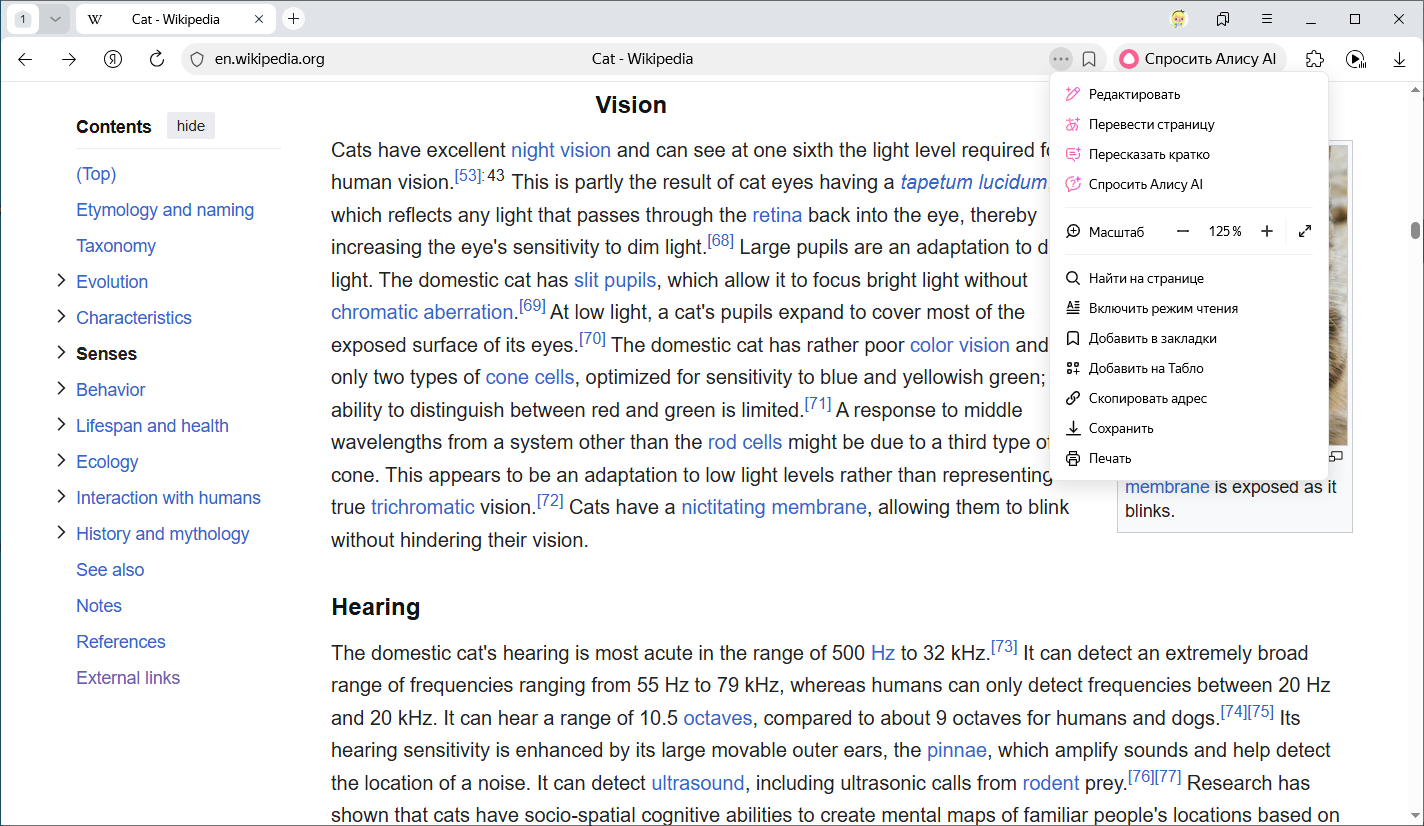 Браузер может переводить на русский язык отдельные слова или предложения на странице. Чтобы увидеть перевод слова или словосочетания, выделите их и нажмите Перевести в контекстном меню. На странице появится окно с переводом.