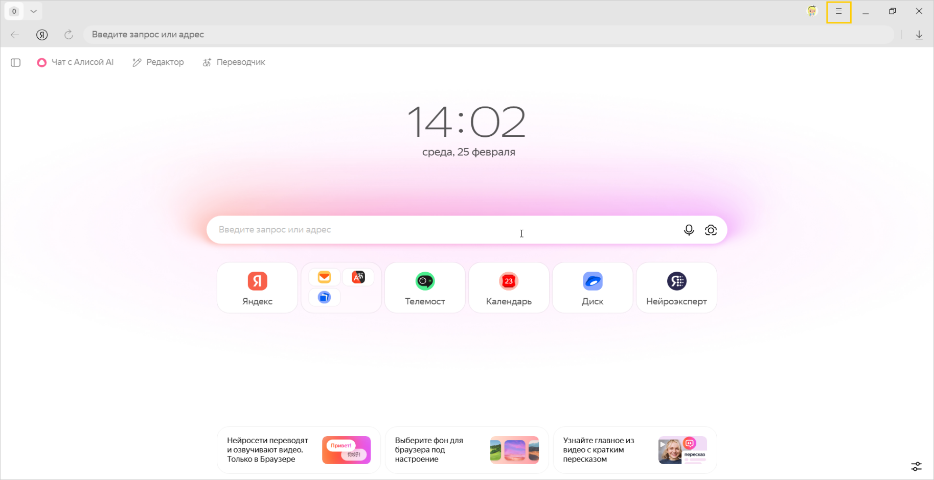 В адресную строку можно вводить поисковые запросы — Браузер сам поймет, что вам нужно.