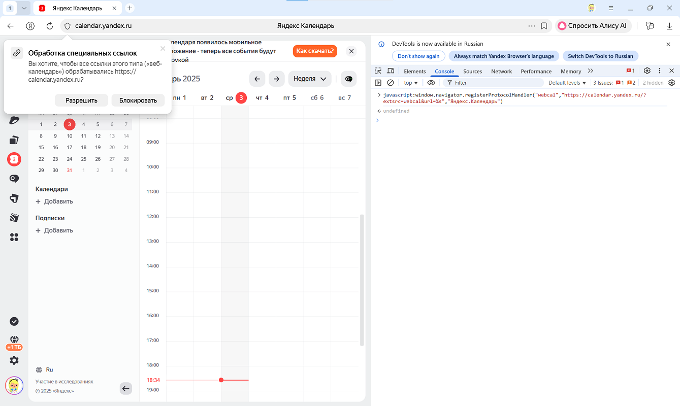 Назначить Яндекс Календарь для обработки протокола webcal