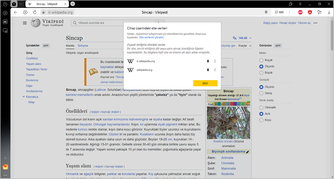 Varsayılan olarak tüm sitelerin çerezleri kaydetmesine izin verilir. Çerez dosyaların kaydedilmesini engellediyseniz, buna izin verin.