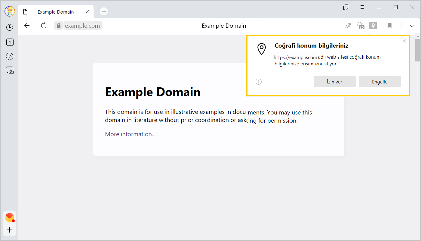 - İzin ver: Sitenin veya site bileşeninin (harita gibi) nerede olduğunuzu öğrenmesi için. Akıllı satır'da