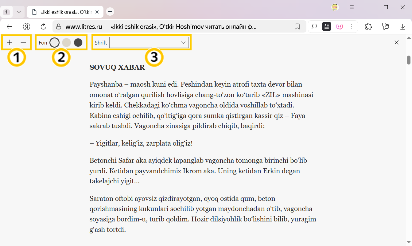 Boshqa sahifaga yoki yorliqqa o‘tganda o‘qish rejimini takroran yoqishingiz zarur.