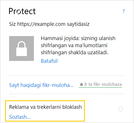 Agar siz istagan sahifada virusli saytlardan unsurlar mavjud bo‘lsa, Brauzer ularni bloklaydi.