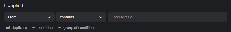 In the If applied block, set the filter conditions. Select To → contains and specify the email of the employee who will be on vacation.