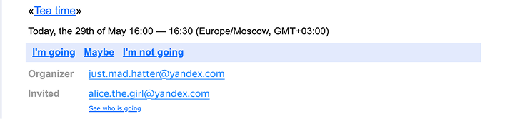To accept the invitation, click I'm going. If you haven't decided yet, open the email and click Maybe.
