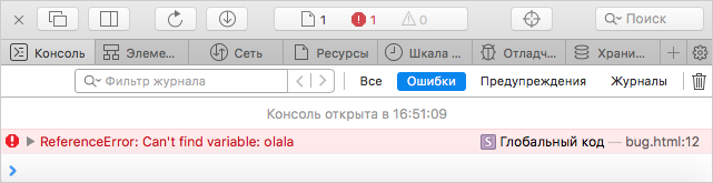Чтобы открыть консоль ошибок, нажмите сочетание клавиш Ctrl + Shift + J (или ⌥ + ⌘+ J для macOS).