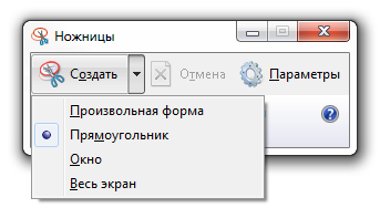 2. Выберите режим: прямоугольная или произвольная форма, нажмите кнопку Создать и сделайте снимок отдельного окна или всего экрана.