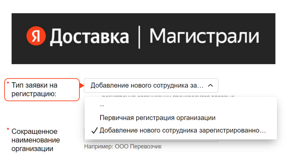 Чтобы завести личный кабинет для сотрудника организации, заполните заявку на регистрацию по ссылке от вашего менеджера, выбрав тип Добавление нового сотрудника зарегистрированной компании.