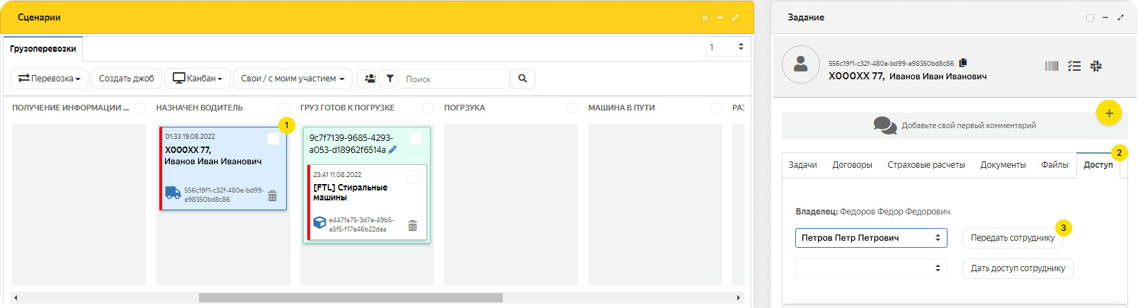 1. На канбан-доске Сценарии около нужного грузоместа заказа нажмите .