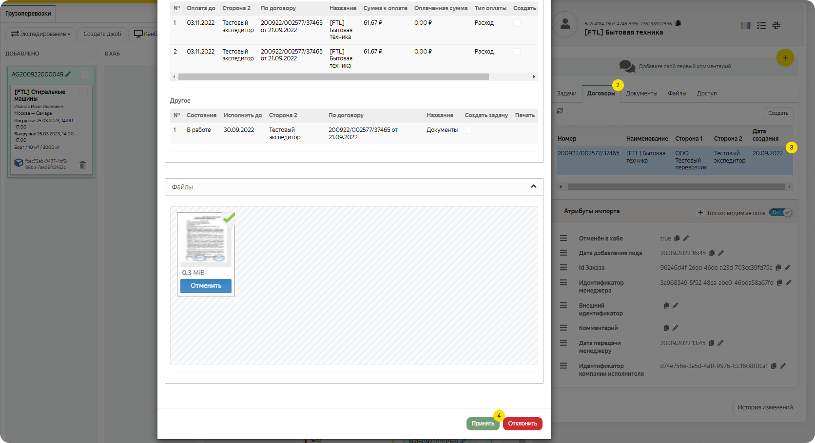 Когда перевозчик подпишет и приложит копию подписанного Разового договора со своей стороны, примите документ в системе: