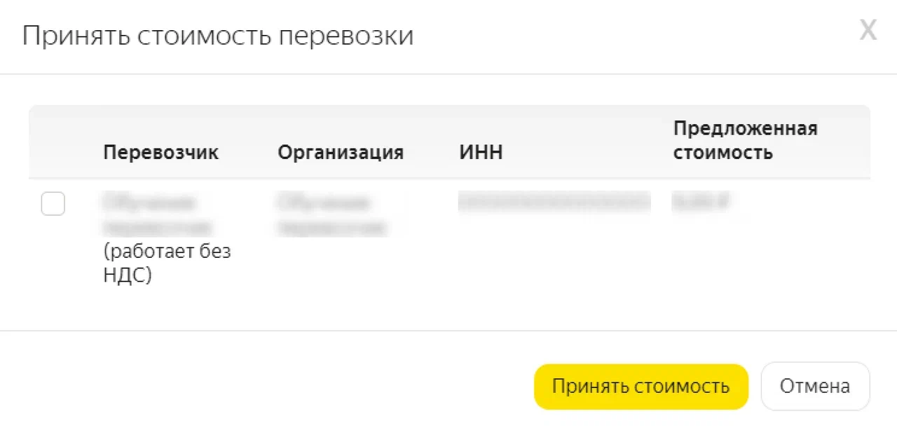 В закрытых торгах («Закрытый хаб») первое предложения от перевозчика может быть как выше, так и ниже заявленной вами стоимости перевозки.