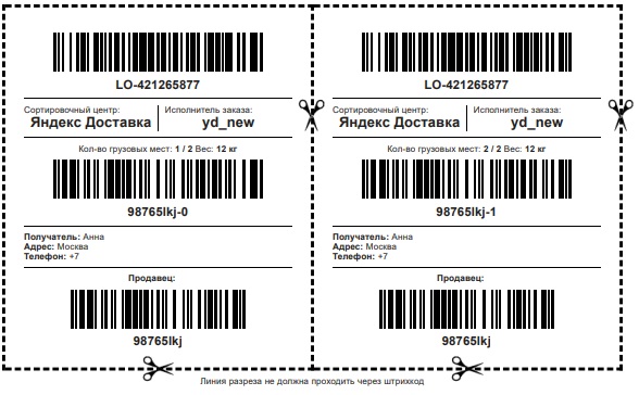 Нельзя оставить часть многоместного заказа без ярлыка и, например, примотать стретч-пленкой к другой части заказа с ярлыком — в этом случае ваш заказ не будет принят.