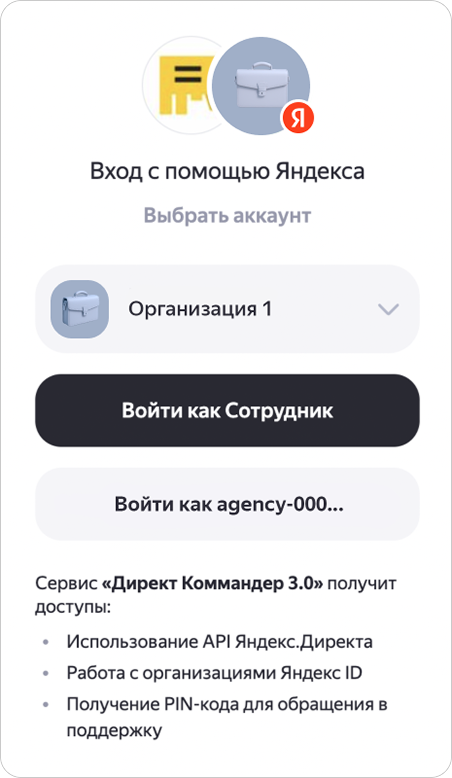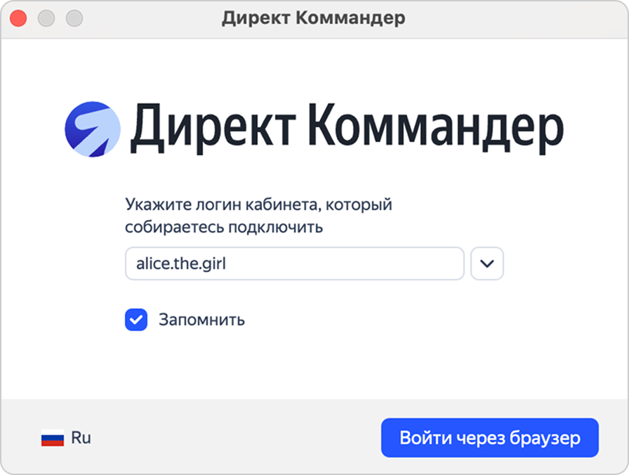 On the first launch, Direct Commander will ask your Yandex Direct username.