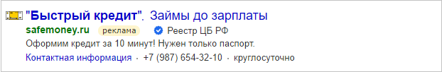 The badge will be added to an ad if the organization's site is in the Central Bank of the Russian Federation's register of microfinance organizations, register of insurance companies , or list of websites of credit organizations.