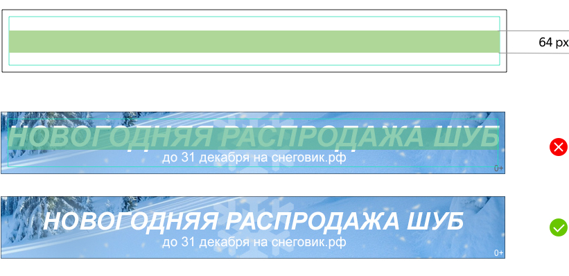 The margin between the edge of the banner and the text must be at least 20 pixels. Text and other banner elements can't overlap the safe areas.