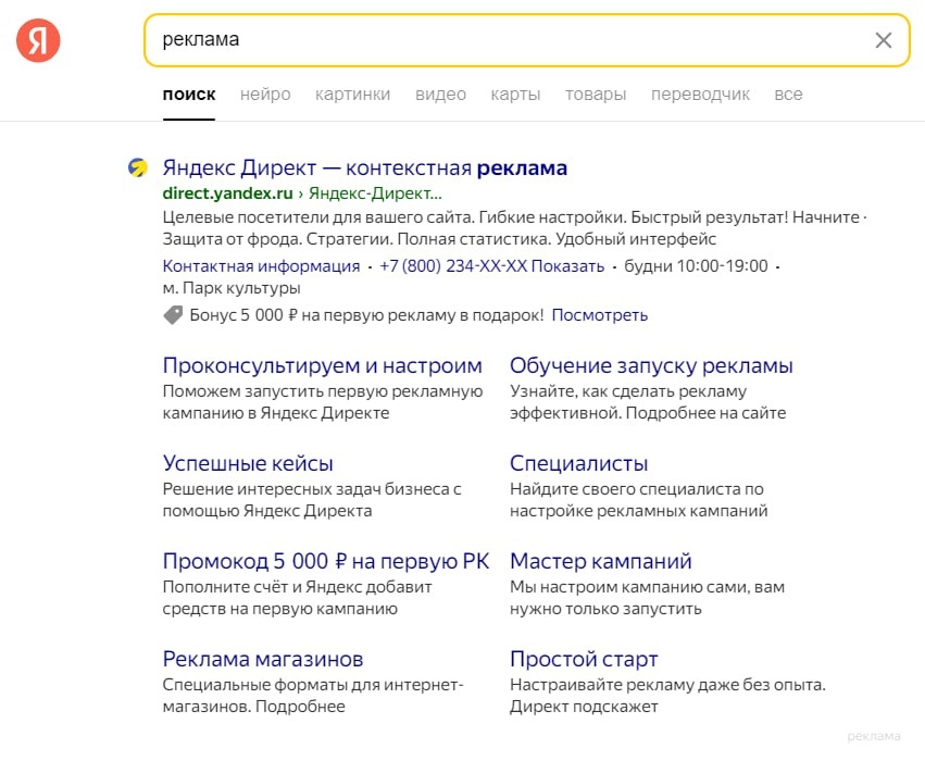 To make ads more appealing, Yandex Direct uses SERP layouts, which are alternative page designs for search results that include varying layouts and section formats. Each time a person wants to find a product or service, the algorithm selects the best fitting template and generates sections for it.
