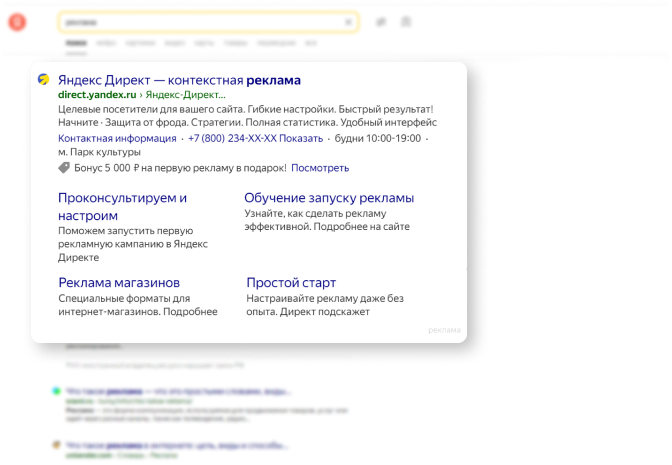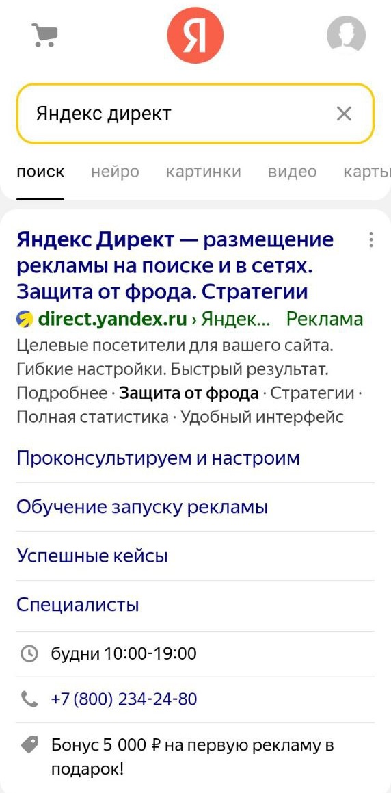 Offer relevance to user interests. Yandex Direct compares an ad and the landing page it leads to with the search term the user entered and what they do on your site.