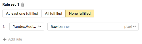Create a segment based on a pixel in Yandex Audience. Specify the period to use for the data, and how many times the user must see the ad during the selected period.