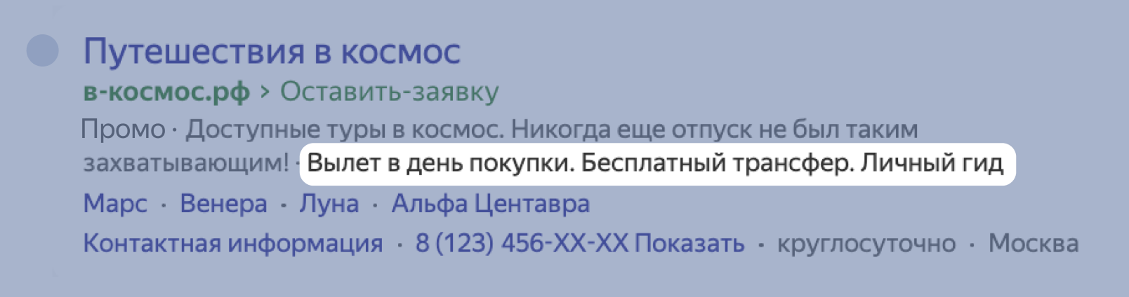 По нашим исследованиям, уточнения повышают CTR объявлений на 3%.