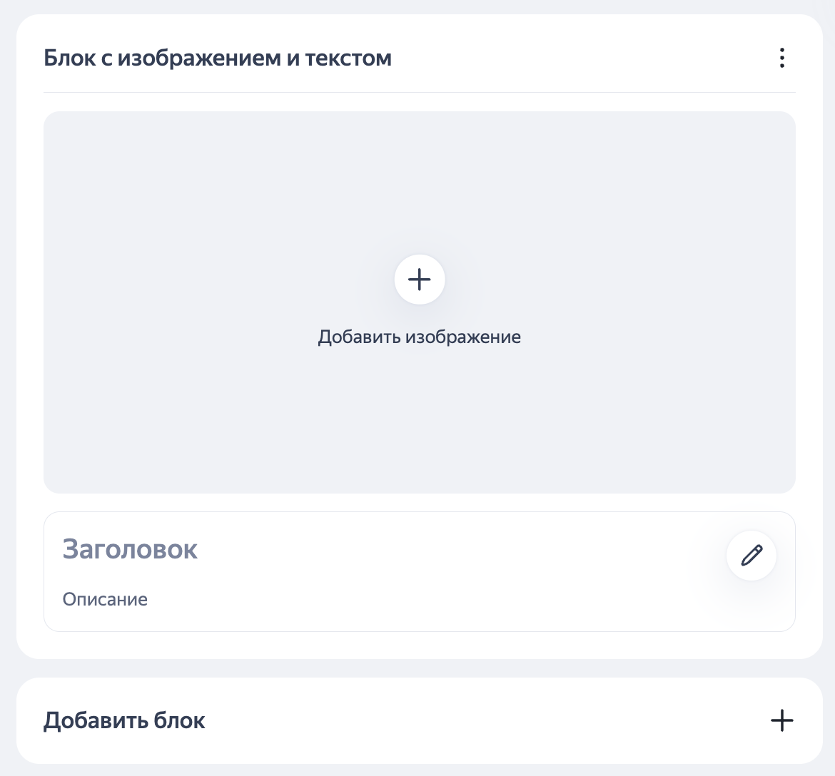 Чтобы настроить расположение на странице (подвинуть выше или ниже), поменять вид или удалить блок, в поле Блок с изображением и текстом нажмите
