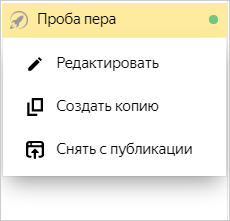 Опубликованные Турбо-страницы помечаются в списке зеленым маркером. Чтобы снять страницу с публикации: