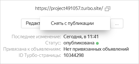 Турбо-страницу можно в любой момент снять с публикации. Это удобно, если вы опубликовали страницу по ошибке или она больше не актуальна. Устаревшие страницы можно удалить, а в библиотеке хранить только самые нужные.
