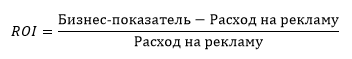 Коэффициент возврата инвестиций позволяет оценить степень окупаемости финансовых вложений в продвижение. Представляет собой отношение отдачи от рекламы к расходу на рекламу: