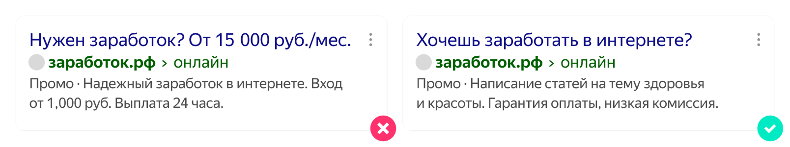 Ключевые фразы должны иметь прямое отношение к тематике объявления.