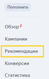 В меню слева перейдите в раздел Рекомендации.
