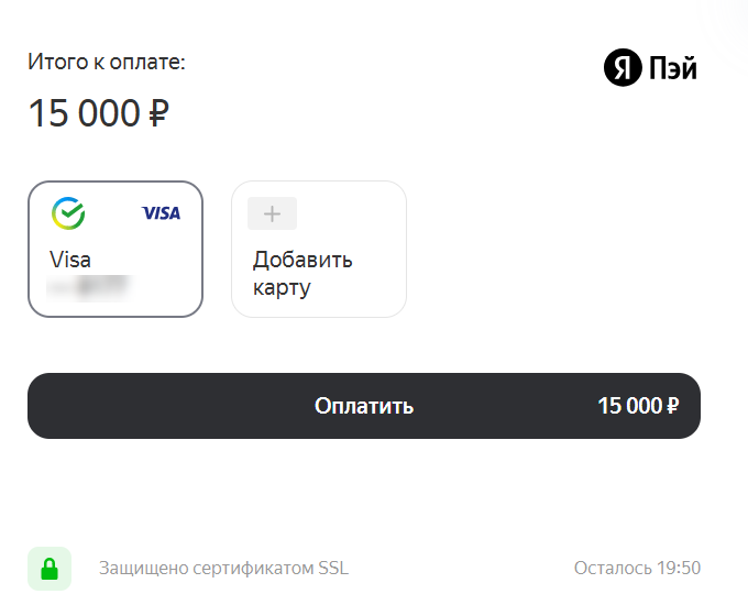 К оплате принимаются банковские карты Visa, EuroCard/MasterCard и МИР.