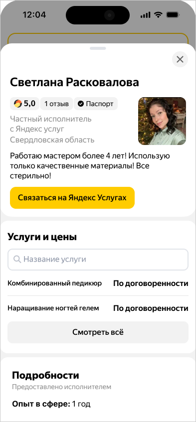 Если вы представляете сервис-агрегатор и хотите продвигать специалистов с вашей платформы в галерее услуг, изучите условия подключения и создайте Единую перфоманс-кампанию. Также вы можете предоставить данные о специалистах в формате фида, чтобы они могли самостоятельно продвигать свои услуги. Подробнее.