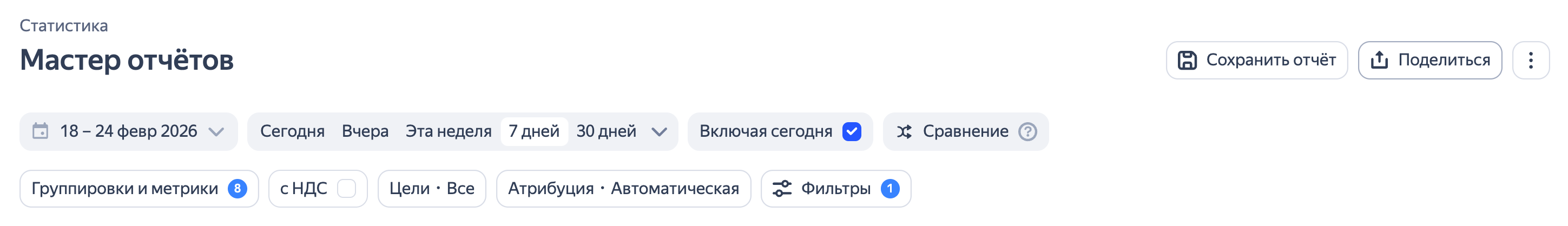 Если скопировать ссылку из адресной строки браузера, поделиться отчетом с другими пользователями не получится — доступ к отчету будет только у вас. Срок действия такой ссылки будет короче.
