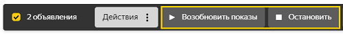 Если вы остановили отдельное объявление, а не всю кампанию, для возобновления показа этого объявления запустите его вновь.