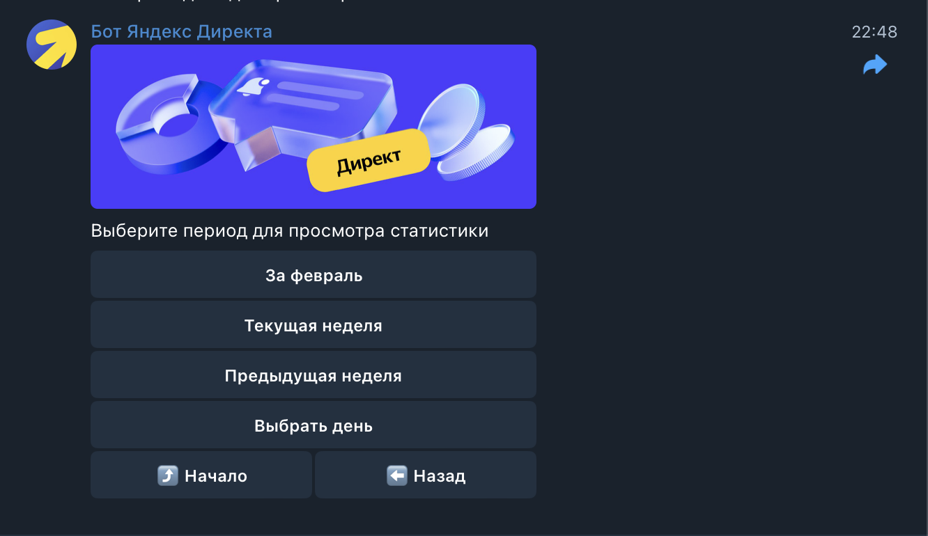 Чтобы оперативно получать данные о работе кампаний, подключите телеграм-бота.