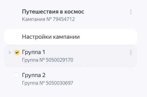 Слева от названия кампании или группы объявлений нажмите