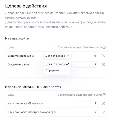 Siteden veya Yandex Haritalar’daki şirket profilinden işletme için önemli eylemleri ekleyin. Reklam algoritmaları, reklamı ihtiyaç duyduğunuz eylemleri gerçekleştirme olasılığı en yüksek olan kişilere gösterecektir.