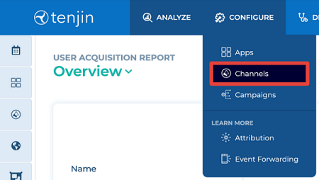 Tenjin arayüzünde CONFIGURE → Channels bölümüne gidin.