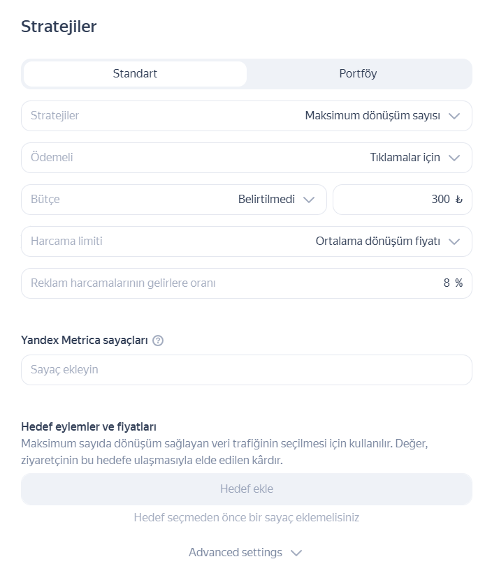 Hedeflere bağlı olarak kampanyanın çalışması için stratejiyi ayarlayın:
