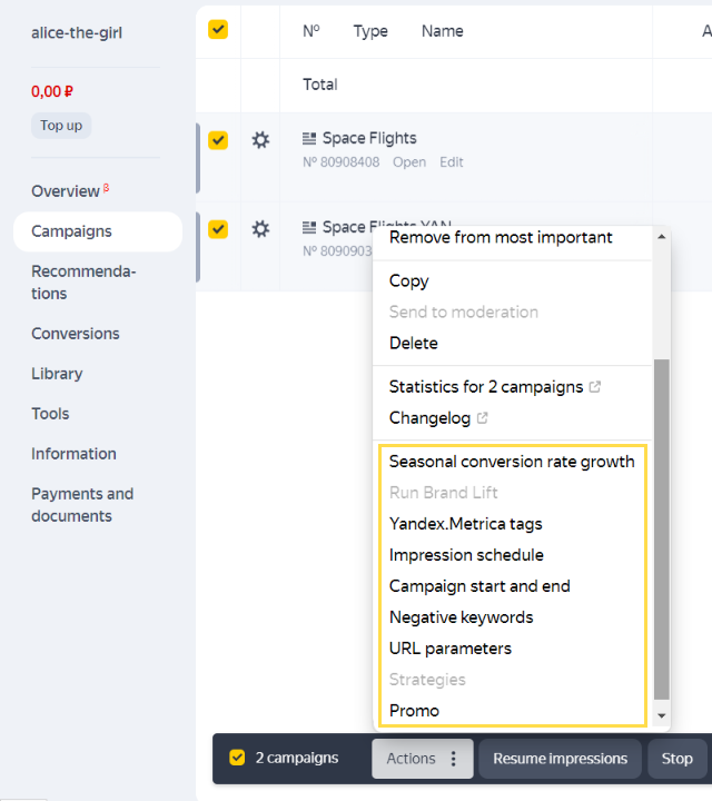 如果在 Yandex Direct 中运行多个广告系列,请使用以下工具。