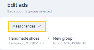 要完成此操作,请在广告组编辑页面上点击 Mass changes。