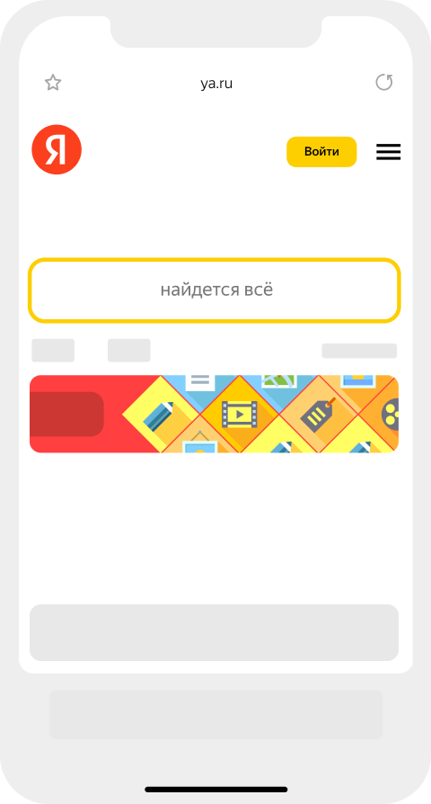 搜索栏下的展示横幅被投放在桌面和移动版的 ya.ru 页面、Yandex Browser 桌面版的新标签页以及 Yandex 网盟网站上。 这样将可以帮助您快速提高品牌知名度和广告记忆率。
