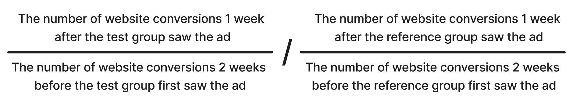 调查将从广告系列的目标受众中选择测试组 (90%) 和对照组 (10%)。 测试组由看过广告的用户组成。 对照组由同一受众群体中特意不接触广告的用户组成。 对照组是通过虚拟拍卖创建的。